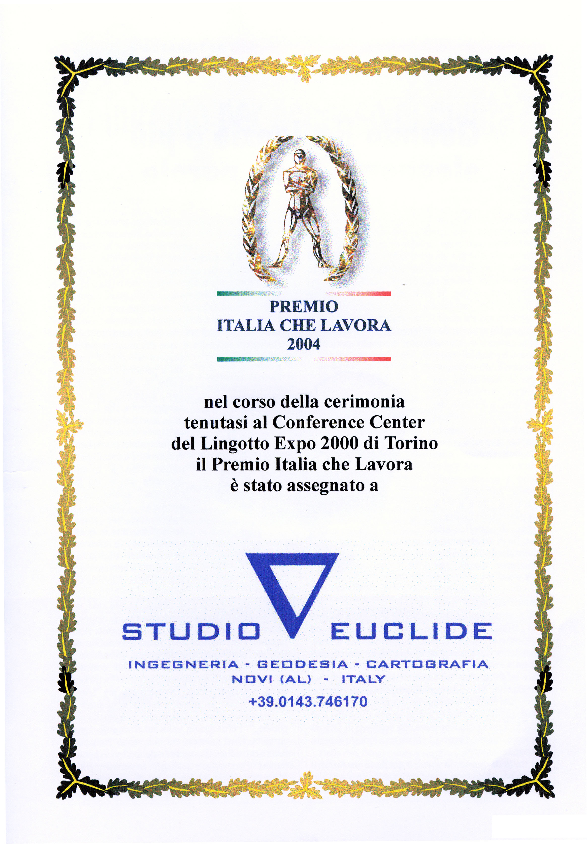 Premium "Italy Working" edition 2004 Quality Certificate issued in prize to Studio Euclide for work regards Back to the to list of Certificates